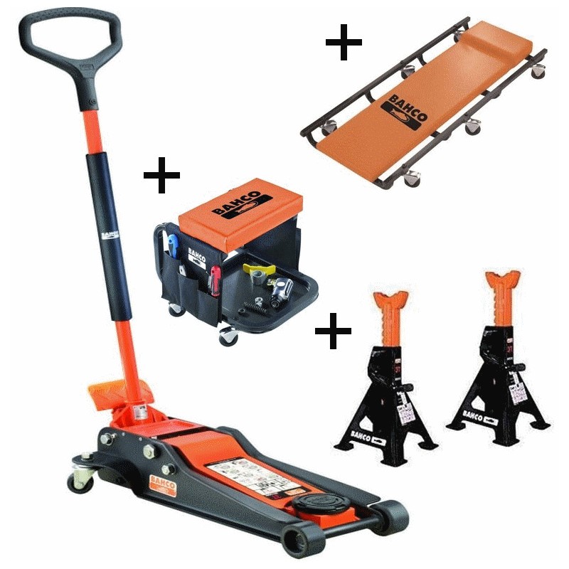 Cric extra bas BAHCO BH13000 3T + chandelles BH33000 + tabouret + chariot BLE304