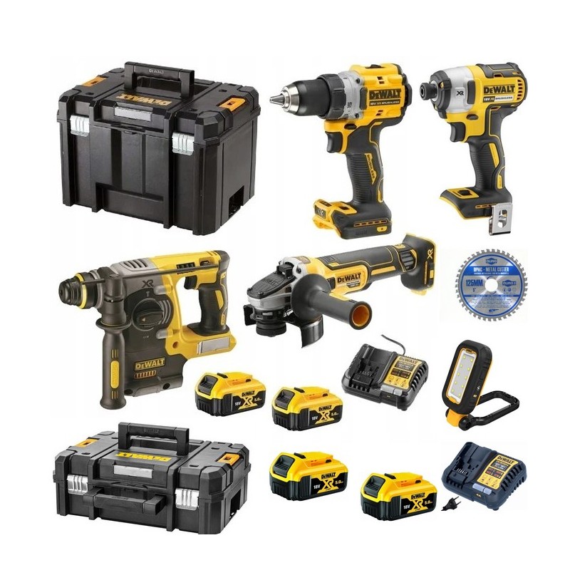 PACK 5 OUTILS DEWALT ,4 batteries 5Ah 18v,2 chargeurs + disque.DCD800/DCF887/DCH273/DCG405/DCL182-XJ